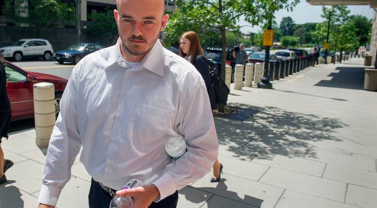 أدين نيكولاس أ. سلاتن "34 سنة" مذنب من الدرجة الأولى من قبل هيئة محلفين فيدرالية في العاصمة في أكتوبر / تشرين الأول 2014 عندما وقف مع ثلاثة من حراس بلاكووتر لإرتكاب حادثة أثارت استياء عميق من مساءلة قوات الأمن الأمريكية أثناء الحرب في العراق .