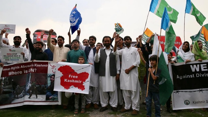 لكن ما هو معروف أنه بعد انفصال باكستان عن الهند عام 1947، شنت إسلام آباد هجوما على كشمير لضمها، فاستنجد "المهاراجا" (حاكم كشمير الهندوسي) بالهند، فاستجابت له ودخلت حربا مع باكستان انتهت بتدخل الأمم المتحدة التي فرضت خط مراقبة وسط الإقليم الذي غدا منذ ذلك الحين مقسما بين البلدين.