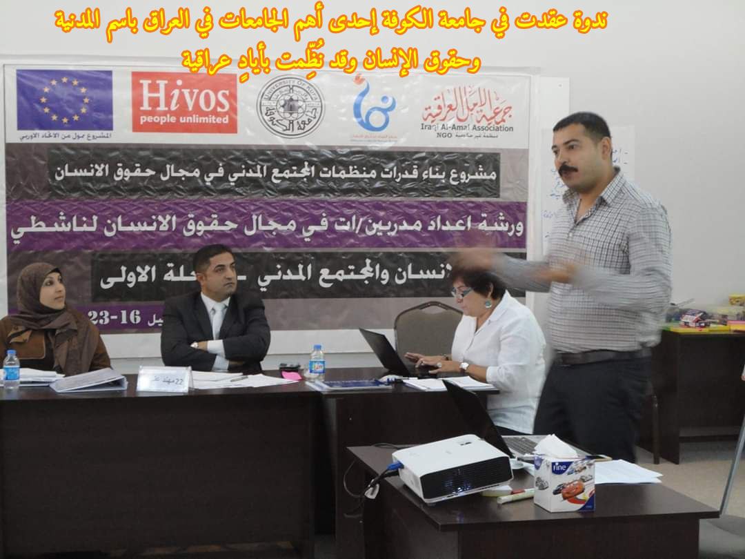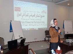 في هذه الصورة ::يظهر شعار المنظمة في ورشة عمل تحت مسمى (التمكين السياسي للمرأة في العراق) ولعل أغرب سؤال يخطر على ذهنك عند مشاهدة هذه الصورة هو : ما علاقة التمكين السياسي للمرأة في العراق بهيفوس الراعي الرسمي للشواذ والمثليين في العالم؟؟ الجواب متروك للقارئ
