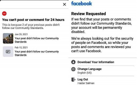 حيث قاموا بغلق حسابي الاول وهو منذ عام 2007 وفيه جزء كبير من حياتي كما اعتبره مدونتي التي اكتب فيها كل شيء عني، كما قاموا بتعليق حسابي الثاني ليوم كامل.