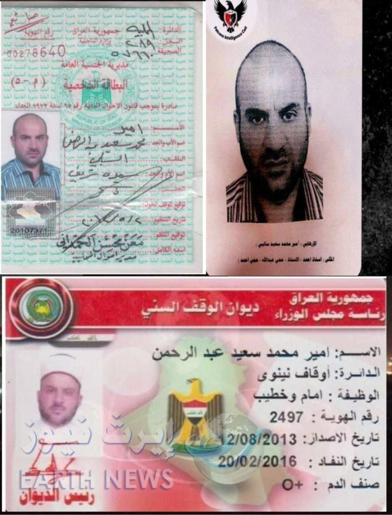 الارهابي القرداش الذي قتل عشرات الالاف من العراقيين وشرد ضعفهم جددت له بطاقة الاحوال المدنية قبل سنتين من سيطرة التنظيم الارهابي على نينوى وعدد من المحافظات العراقية، اضافة لهوية الوقف السني.