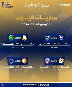 دوري نجوم العراق: أربع مباريات ضمن منافسات الجولة 17 هذا اليوم