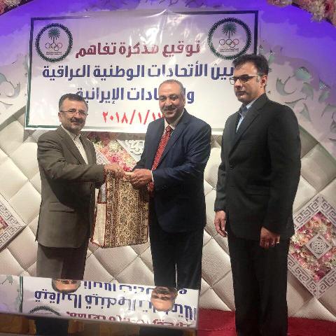 وقال علي في بيان للجنة الاولمبية العراقية إن "الوفد الرياضي الايراني ترأسه محمد رضا دافرزاني وكيل وزارة الرياضة للبطولات الرياضية وضم في عضويته رؤساء واعضاء خمسة عشر اتحاداً رياضياً ستوقع مع الاتحادات المركزية العراقية اتفاقيات تعاون تتضمن اقامة المعسكرات التدريبية بين المنتخبات الوطنية في جميع الفعاليات الرياضية وتبادل الخبرات، واقامة الدورات التدريبية والتحكيمية والمشاركة في البطولات الرسمية التي سيتم تنظيمها من البلدين وتفعيل وعقد المؤتمرات وورش العمل المعنية بتطوير قابليات الشباب في البلدين".