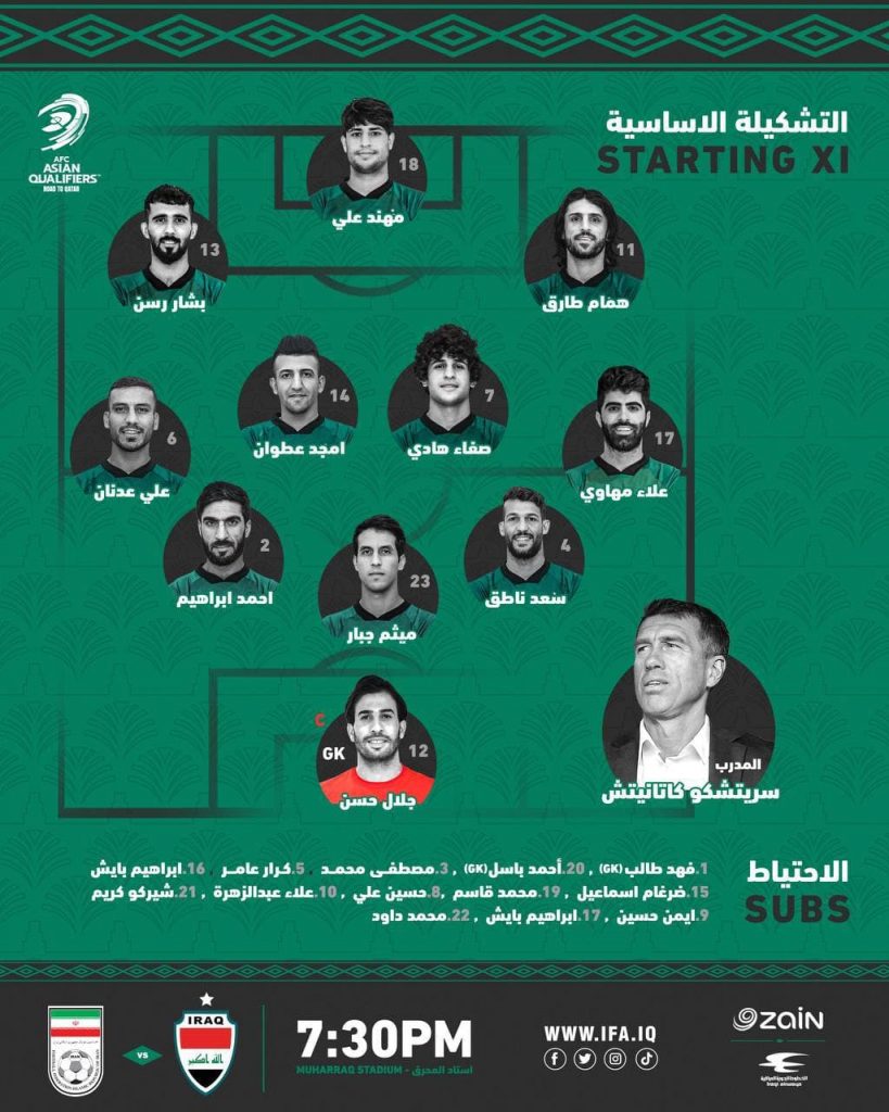 بالصورة.. تشكيلة منتخبنا الوطني لمواجهة إيران