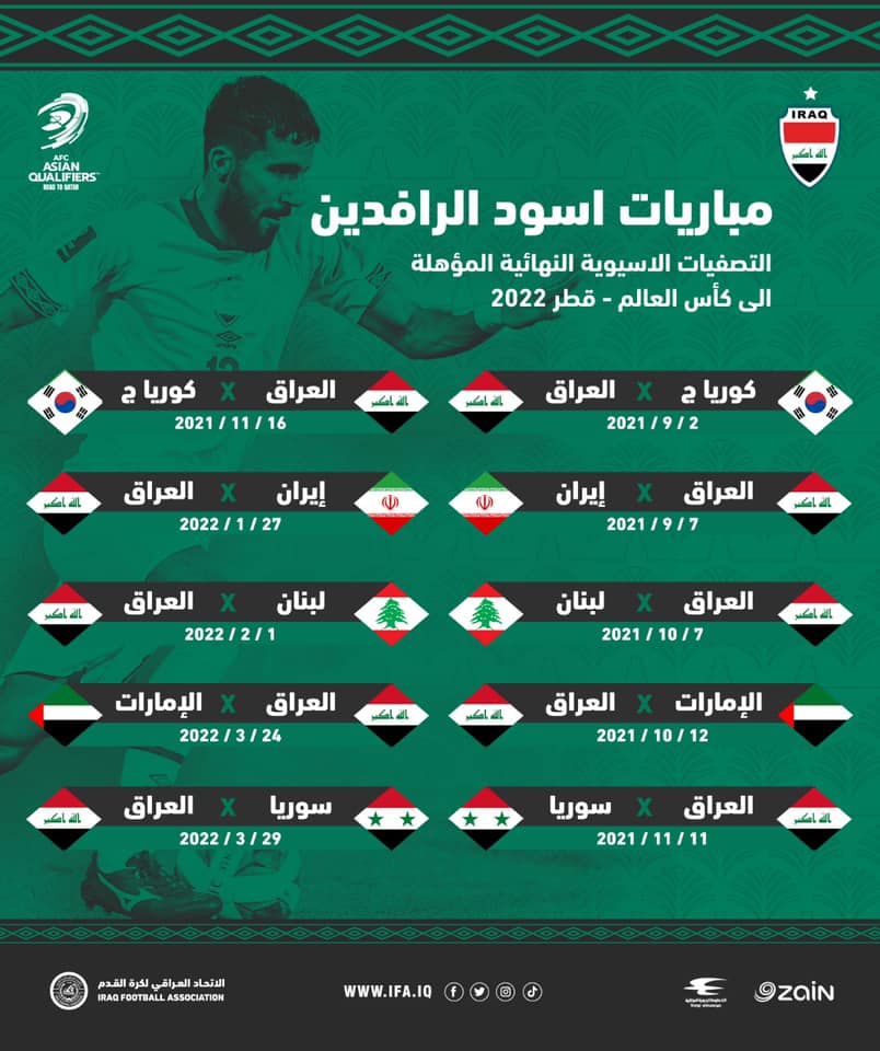 جدول مباريات المنتخب الوطني للتصفيات النهائية المؤهلة لمونديال قطر 2022.