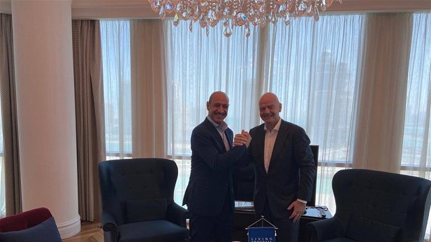 وأكدَ رئيس الاتّحاد الدولي، أثناء اللقاء، "حرصهُ على دعمِ مَسيرة الكرة العراقيّة والعمل في الفترةِ المُقبلة على تطويرِ لجانه العاملةِ بما في ذلك التأكيد على حقهِ في احتضانِ المنافساتِ الرسميّة والوديّة في ملاعب المدن العراقية".