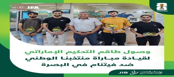 وصل عصر اليوم الأحد طاقم التحكيم الإماراتيّ المُكلف بقيادةِ مباراة منتخبنا الوطنيّ ونظيره الفيتناميّ التي تقام يوم الثلاثاء المُقبل في ملعبِ البصرة الدوليّ، وكان في الاستقبال عُضو قسم الحكام الواعدين في لجنةِ الحكام أحمد شاكر.