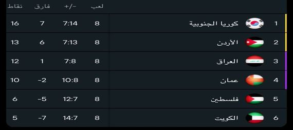 ترتيب مجموعة العراق بعد الخسارة من فلسطين