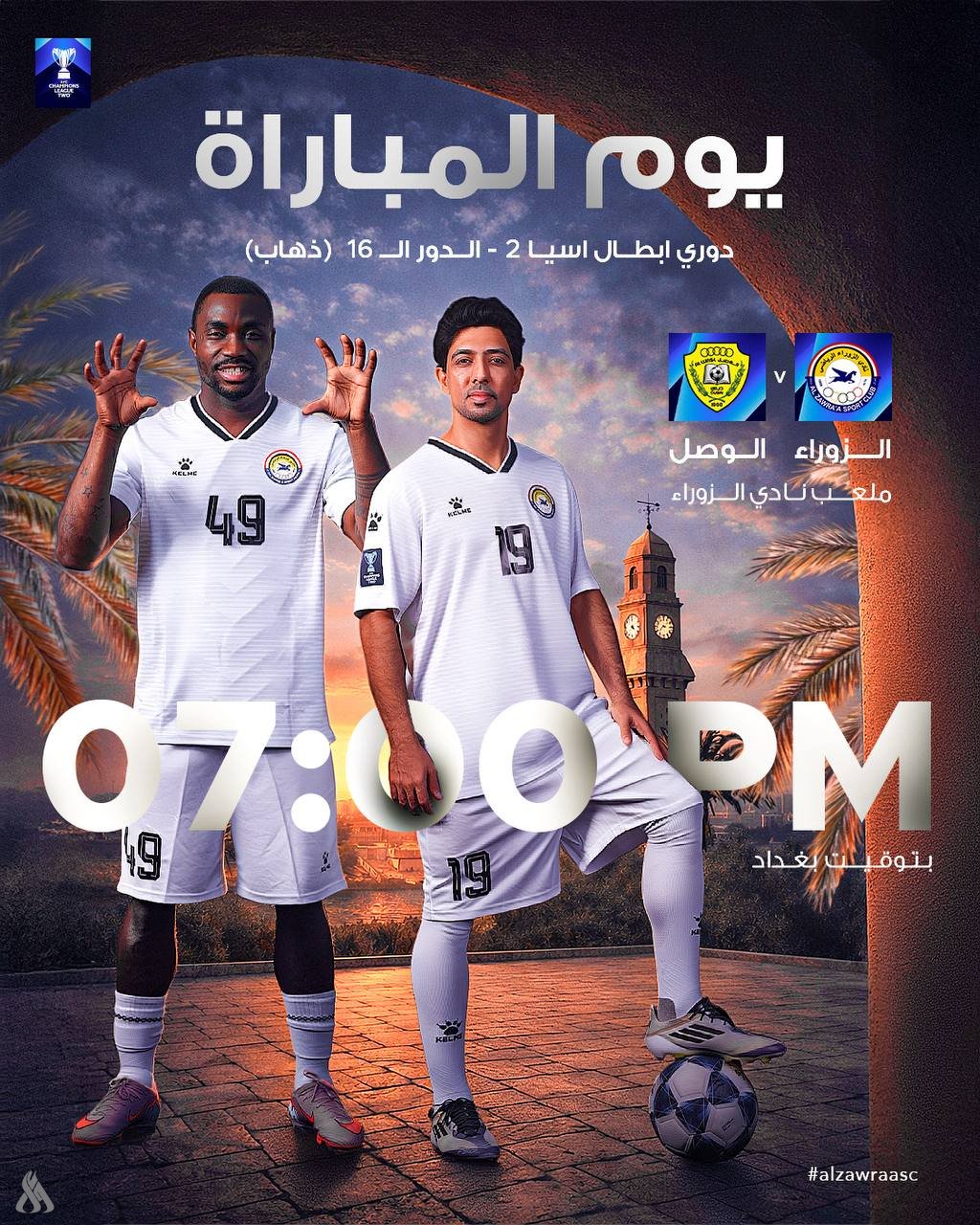 يجري فريق الزوراء، مساء اليوم الثلاثاء، اختباراً قارياً، بمواجهة فريق الوصل الإماراتي عند الساعة السابعة، في إياب دور الستة عشر من بطولة دوري أبطال آسيا الثانية، في مواجهة تُعد مفصلية في مشوار النوارس نحو الأدوار المتقدمة، حيث تحمل المباراة طابع الحسم، إذ يسعى الزوراء إلى تأكيد أفضليته ومواصلة حضوره القاري المميز، مستنداً إلى نتيجة لقاء الذهاب التي تمنحه أفضلية معنوية، حيث يكفيه الفوز أو التعادل لحسم بطاقة العبور إلى الدور ربع النهائي.