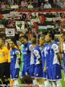 جماهير إسبانية تستقبل فريقاً صهيونيا بعلم فلسطين