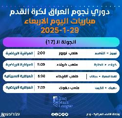 أربع مباريات في الجولة الـ17 من دوري نجوم العراق اليوم الأربعاء