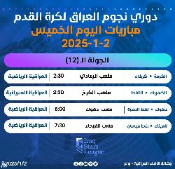 اليوم الخميس، إنطلاق الجولة الـ12 من دوري نجوم العراق