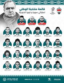 قائمة المنتخب الوطني لمباراتي سوريا وكوريا الجنوبية