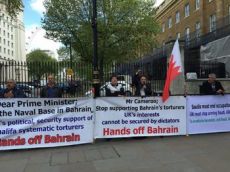 إعتصام في لندن إحتجاجا على زيارة حمد الخليفة ونجله ناصر الى بريطانيا