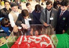 تزاحم من قبل الموالين لأهل البيت (ع) في باكستان على التبرك براية أبي الفضل العباس (ع)