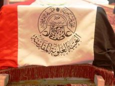 العتبة العلوية المقدسة تضع شعارها على العلم العراقي لتقدمه الى شهداء الوطن