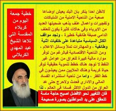 الامام المفدى السيد علي السيستاني يدعو إلى "تجنب المظاهر المسلحة خارج الأطر القانونية" و يطالب بـ"ضبط النفس"