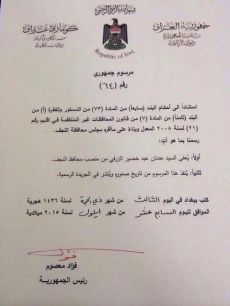 رئاسة الجمهورية : توقيع جميع مراسيم اعدام قضايا التفجيرات ولم نتسلم بعد أحكام سبايكر