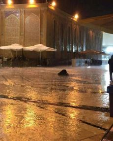 صورة اليوم/ زائر يسجد في صحن أمير المؤمنين عليه السلام أثناء سقوط المطر