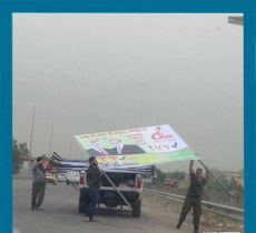 بالصور.. استغلال المال العام وسيارات الدولة في تعليق اللوحات الانتخابية الخاصة بدولة القانون
