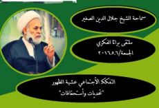 غدا الجمعة عصرا/ محاضرة لسماحة الشيخ جلال الدين الصغير في ملتقى براثا الفكري بعنوان "التفكك الأجتماعي عشية الظهور ـ تحديات وأستحقاقات"
