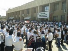 طلبة جامعة الامام الصادق التي اغتصبها حسين بركة الشامي يتظاهرون احتجاجا على سوء معاملة الحرس وعدم شمولهم بالمنحة
