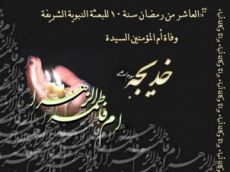 10 / شهر رمضان المبارك ) ذكرى وفاة السيدة خديجة بنت خويلد ( عليها السلام )