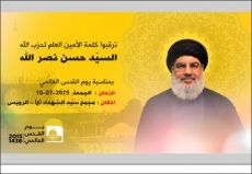 السيد نصر الله يلقي كلمة في يوم القدس العالمي الجمعة