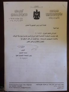 وكالة أنباء براثا تحصل على نص كتاب المحكمة الأتحادية الموجه الى رئيس الجمهورية بشأن تحديد الكتلة الأكبر والذي لم يشر الى دولة القانون لا من قريب أو بعيد