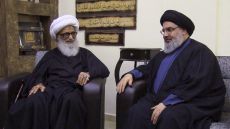 السيد حسن نصر الله يزور سماحة المرجع المفدى الشيخ بشير النجفي (دام ظله) في مقر اقامته للأطمئنان على صحته