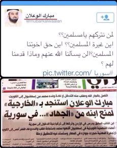 شيخ كويتي وهابي يستنجد بوزارة الخارجية الكويتية لمنع ابنه من الجهاد في سوريا