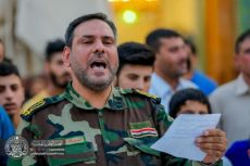 بعد إنتهاء تدريباتهم العسكرية/ أساتذة وطلبة وموظفو جامعة الكوفة يرددون قسم الولاء للعراق في حضرة أمير المؤمنين (عليه السلام)