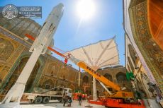 نصب اول مظلة عملاقة في الصحن العلوي المطهر