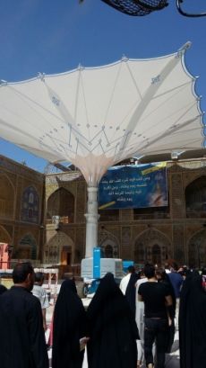 نصب مظلات عملاقة في الصحن الحيدري الشريف