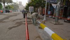 الكوادر الفنية في العتبة الحسينية تباشر بحملة واسعة لتجميل الأرصفة المحيطة بالصحن الحسيني الشريف