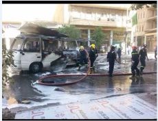 وكالة انباء براثا تنشر صور التفجير الارهابي بعبوة ناسفة داخل باص تابع للعتبة الحسينية المقدسة في كربلاء