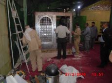 تفكيك شباك ضريح الشهيد حبيب بن مظاهر الاسدي داخل الحرم الحسيني لاستبداله بجديد