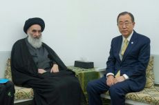 بان كي مون : تشرفت بلقاء السيد السيستاني والسيد يتمتع بالحكمة والتسامح والالهام لاتباعه وللعالم