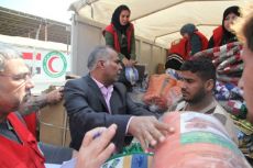 شركة الخطوط الجوية العراقية توزع مواداً إغاثية للنازحين