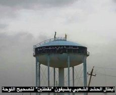 ابطال الحشد الشعبي يصححون جملة كتبها الدواعش الجبناء على احد الخزانات الكبيرة للماء في تكريت ( صورة )
