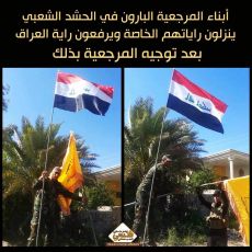 بالصورة ... ابطال الحشد الشعبي ينزلون راياتهم ويرفعون العلم العراقي