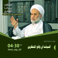 الجمعة عصرا/ محاضرة سماحة الشيخ جلال الدين الصغير في ملتقى براثا الفكري ( السياسة في واقع المنتظرين)