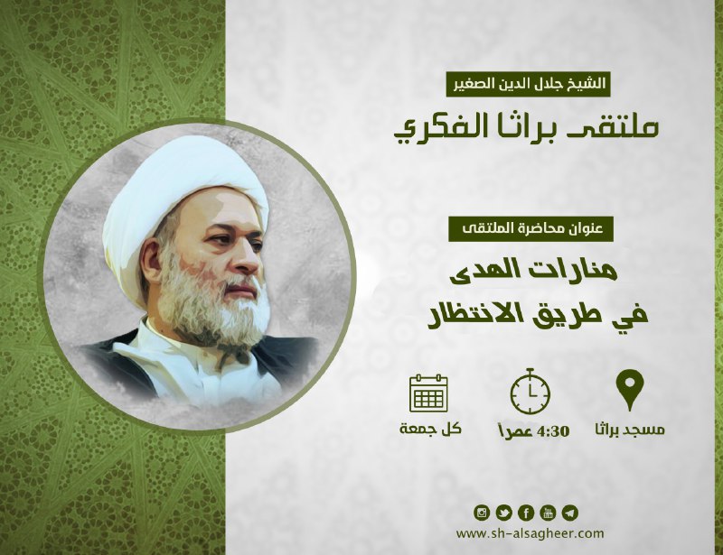 يلقي المحاضرة سماحة الشيخ جلال الدين الصغير في مسجد براثا والدعوة عامة للجميع.