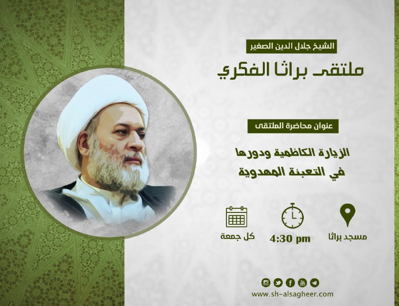 يلقي المحاضرة سماحة الشيخ جلال الدين الصغير في مسجد براثا والدعوة عامة للجميع.