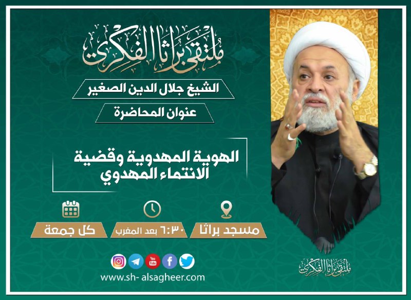 عنوان محاضرة الشيخ جلال الدين الصغير في منتدى براثا الفكري القضية المهدوية وقضية الانتماء المهدوي