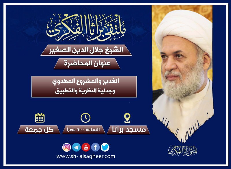 الغدير النظرية ينتظر غدير التطبيق وما بينهما ثمة محطات واستحقاقات سيتوقف عندها سماحة الشيخ في محاضرته عصر يوم غد الجمعة في ملتقى براثا الفكري في الساعة السادسة في جامع براثا.
