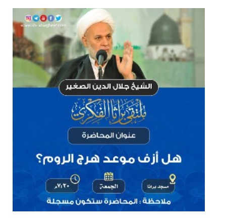 هرج الروم او اقتتالهم من الامور التي ذكرتها الروايات الموثقة والتي تحصل قبل الظهور الشريف بفترة قصيرة جداً، فهل ازف الموعد ام لا زال بعيدا؟ محاضرة سماحة الشيخ في يوم غد ستتناول هذا الموضوع تحديداً، وستكون مسجلة بسبب ظروف الوقاية العامة والامر بلزوم البيت.