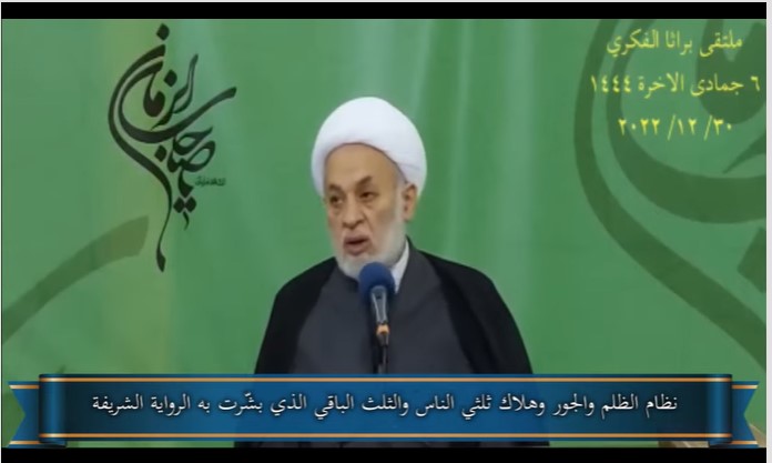 الشيخ جلال الدين الصغير يتحدث عن نظام الظلم والجور وهلاك ثلثي الناس والثلث الباقي الذي بشّرت به الرواية الشريفة