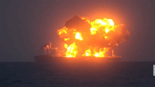انصار الله يحرقون ناقلة نفط يونانية في البحر الأحمر