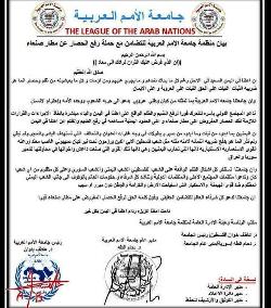 بيان صادر عن منظمة جامعة الامم العربية للتضامن مع الحمله الدوليه لفك الحصار عن مطار صنعاء الدولي